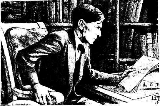 JOSE CARLOS MARIATEGUI, dibujo al carbón por Carlos de la Riva. (Reproducido en "Unidad", Nº 9, Lima, 1° de Mayo de 1957).