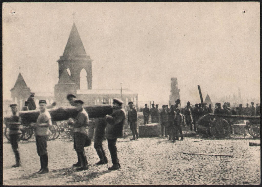 Imagem: Lênin (primeiro à direita entre os carregadores de madeira) no primeiro sábado comunista em 01 de maio de 1920. Clique para aumentar.