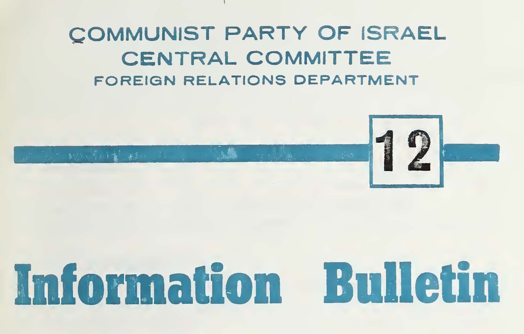 This Information Bulletin was published by the Central Committee of the Communist Party of Israel (MAKI) until its dissolution through merger with RATZ in 1981. In August 1965 the Party had undergone a split. The new Party, originally called New Communist List, and later the Communist Party of Israel (RAKAH) published its own Information Bulletin which we have archived separately. To further confuse matters, after the original MAKI disappeared, in 1989, RAKAH changed its name to MAKI.